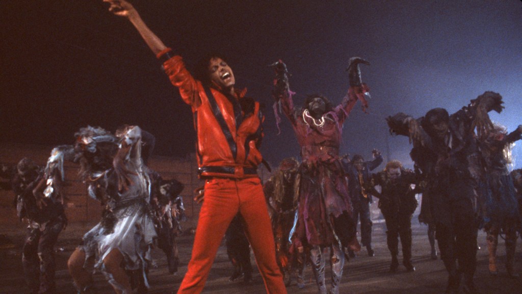 It was one of the most expensive videos for its time, with a budget of at least $500,000, if not, over $1,000,000. The short film’s structure, blending a playful homage to I Was a Teenage Werewolf (set to music by Elmer Bernstein left over from American Werewolf) into a metanarrative of Jackson and his date, former Playboy Playmate Ola Ray, is one of many fun elements that help to build to the campy whole. Aside from the theater scenes, the restructuring of the song has always fascinated me. Verse after verse of MJ messing with Ray build into the rap by horror icon Vincent Price, which in turn gives way to the now celebrated dance sequence and that iconic chorus. It’s a genius way of building tension as the suspense comes from both the rising of the dead from their graves, and you waiting for what essentially becomes the greatest title drop in the history of the music video.