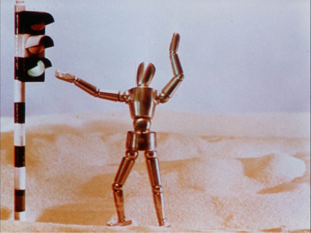 Like a bizarro Puppetoon a la George Pal, Lye displays incredible creativity through handsomely crafted models, stylish sets, and an effective remolding of Holst’s The Planets as the driving musical score for this charming and strangely stirring achievement in stop-motion filmmaking. Also of note is an alternate version which features voiceover narration pitched firmly at the industrial film crowd it might otherwise have passed by. A little stuffy and on-the-nose unfortunately, but the primary version does let the animation speak for itself, so it’s a good thing it’s just that: an alternative. One of the most delightful curios from a very special place in science fiction (and real-world) history.